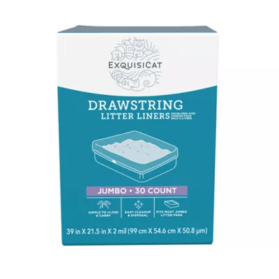 Exquisicat Drawstring Litter Liners make clean-up and disposal of used cat litter a breeze. These elastic liners feature drawstrings that make the line easy to close and carry, and allow you to clean up in quick and easy fashion. Only at PetSmart.