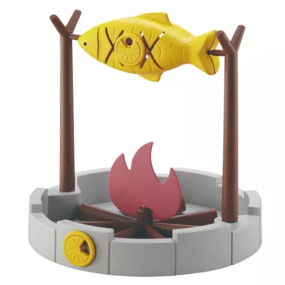 Introducing the PetPals Grilled Fish Toy - the ultimate slow feeder and treat dispenser for your cat! This playful toy features a rotating fish and campfire design that allows your cat to retrieve their favorite treats through play! Snacks can placed into our adorable bright yellow fish and you can control how big the dispensing hole is to accommodate your cat's favorite treats. Enhance the excitement of feeding or treat-giving, while providing your cat with mental and physical stimulation. The bright and colorful design makes mealtime engaging while controlling the pace of food delivery and promotes healthy eating habits. Its adjustable snack size feature accommodates various treats, ensuring endless entertainment! Let your kitty enjoy mealtime and treat time with the PetPals Grilled Fish Toy!