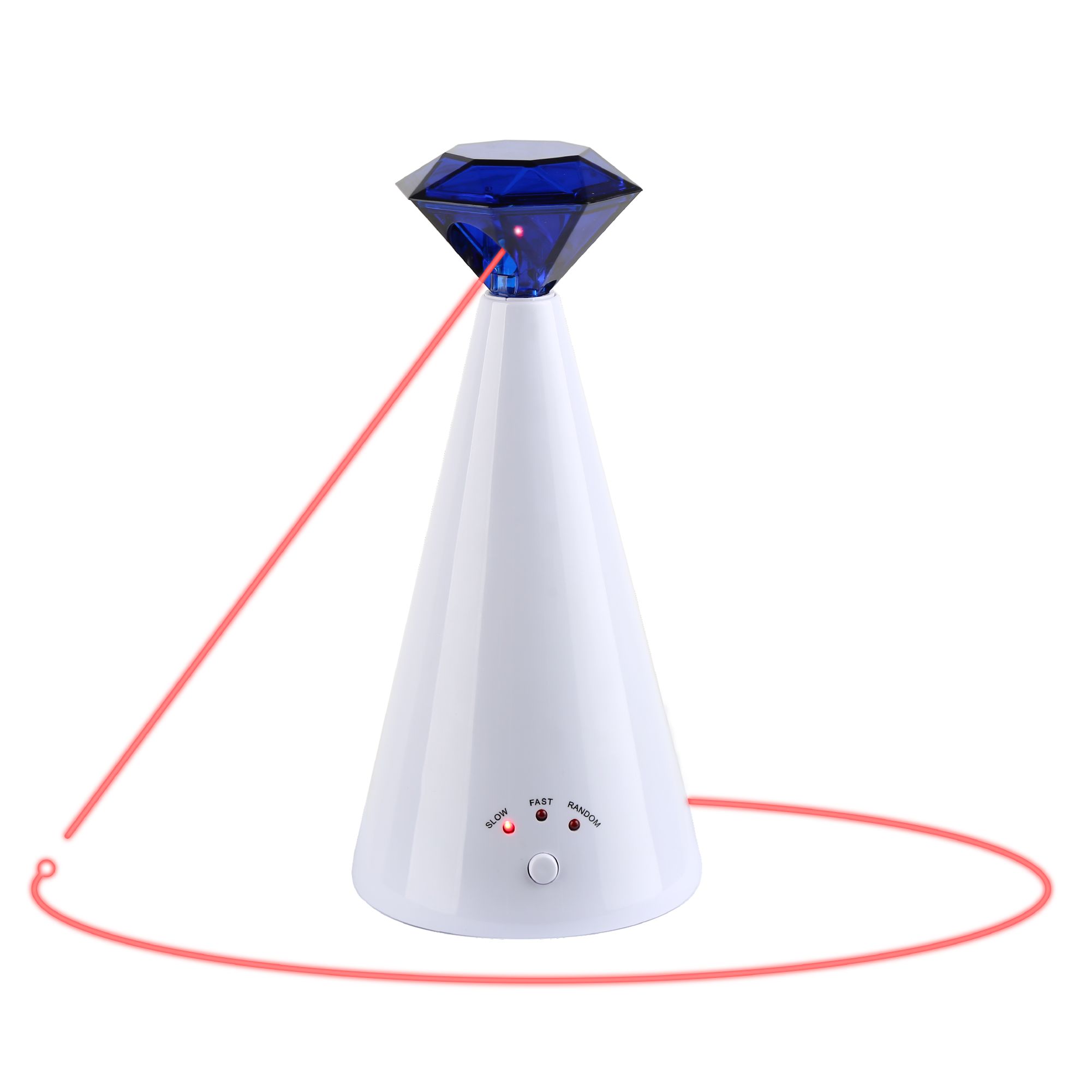 Features: Safe for Pets - The Dancing Dot features a Certified Class 1 laser that's completely safe for your cat to play with; toy requires 3 AAA batteries (not included); 2 Play Modes - One-Time-Play and Play-All-Day modes give you options to keep your kitty entertained, even while you are not home; Elevate Playtime - Place the toy on a raised, flat surface or hang it from a doorknob for wider and faster laser movement; Scheduled Down Times - Rest mode between sessions prevents your cat from being over-stimulated and keeps the game exciting; Encourages Healthy Lifestyle - The random patterns and movements of the laser keep your cat challenged and engaged by stimulating her natural instincts to chase, stalk and pounce; No More Boredom - Play-All-Day mode turns the toy on for 15-minute intervals every 2 hours for up to 6 hours, giving a total of 3 play sessions