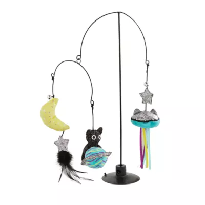 This Whisker City Spacecat Mobile Cat Toy promises to keep your kitty engaged and entertained. This fun mobile of tantalizing toys mixes things up and provides endless entertainment for your curious cat. Even with so much for them to do, we added catnip inside for more fun too. Only at PetSmart.