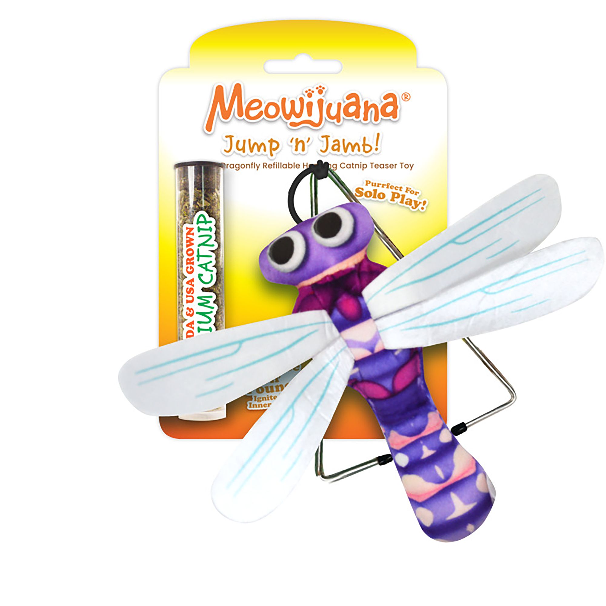 Get ready to make your kitties jump for joy with the Meowijuana® Jump 'n' Jamb Funky Monkey Toy! This funky monkey toy is designed to provide endless fun and excitement for your feline friends. Simply tuck some of our premium, organic Meowijuana® catnip into the refillable pocket on the side, clamp the sturdy coated hanger onto your door frame, and watch your cats leap with delight! Our toy is crafted to be safe for walls and door frames, ensuring it won't scratch when used properly. For added safety, always kitty-proof their play area. The adjustable cord fits any size play area and is durable enough to withstand the wildest of pawtiers. This engaging toy will keep your cats entertained for hours, satisfying their natural instincts and providing them with the ultimate playtime experience. Let your cats swing into action with the Meowijuana® Jump 'n' Jamb Funky Monkey Toy! The Meowijuana® Jump N' Jamb Monkey Toy provides endlessfun and excitement for your feline friends with its funky design.