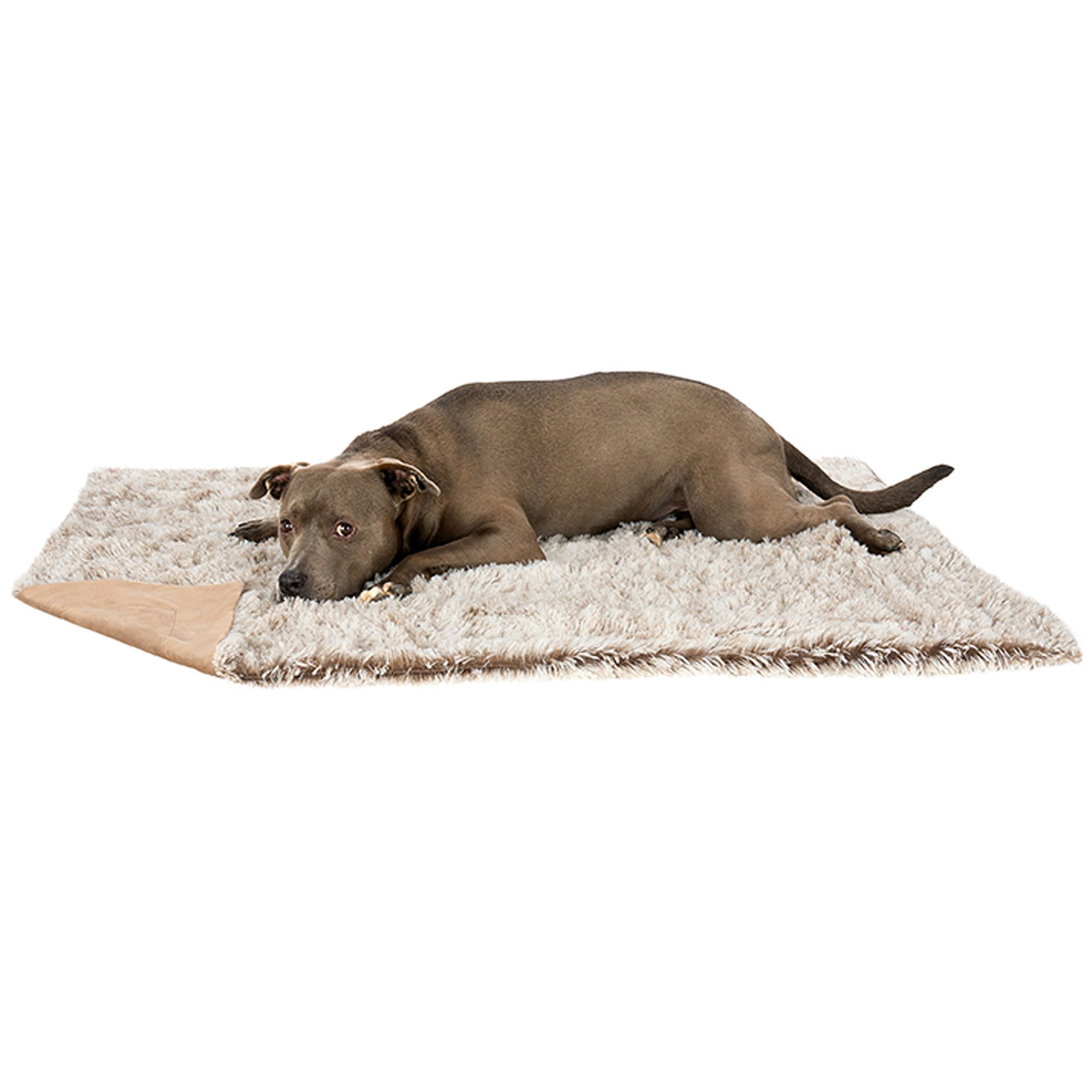Features: DESIGN: This soft, super snuggly blanket will help keep your pet warm and cozy in the cold evenings and even colder winter months. SLEEP SURFACE: The blanket features luxuriously plush long faux fur fabric and downy velvet surfaces, both of which are gentle on noses and paws for enhanced snuggling comfort. WATERPROOF: The soft velvet surface features waterproof coating to help protect bed and living room furniture against dirt, spills, and accidents. HOME DECOR: In addition to helping keep your pet cozy, the stylish long faux fur design makes the dog blanket a tasteful home decor piece for your living room or bedroom furniture.