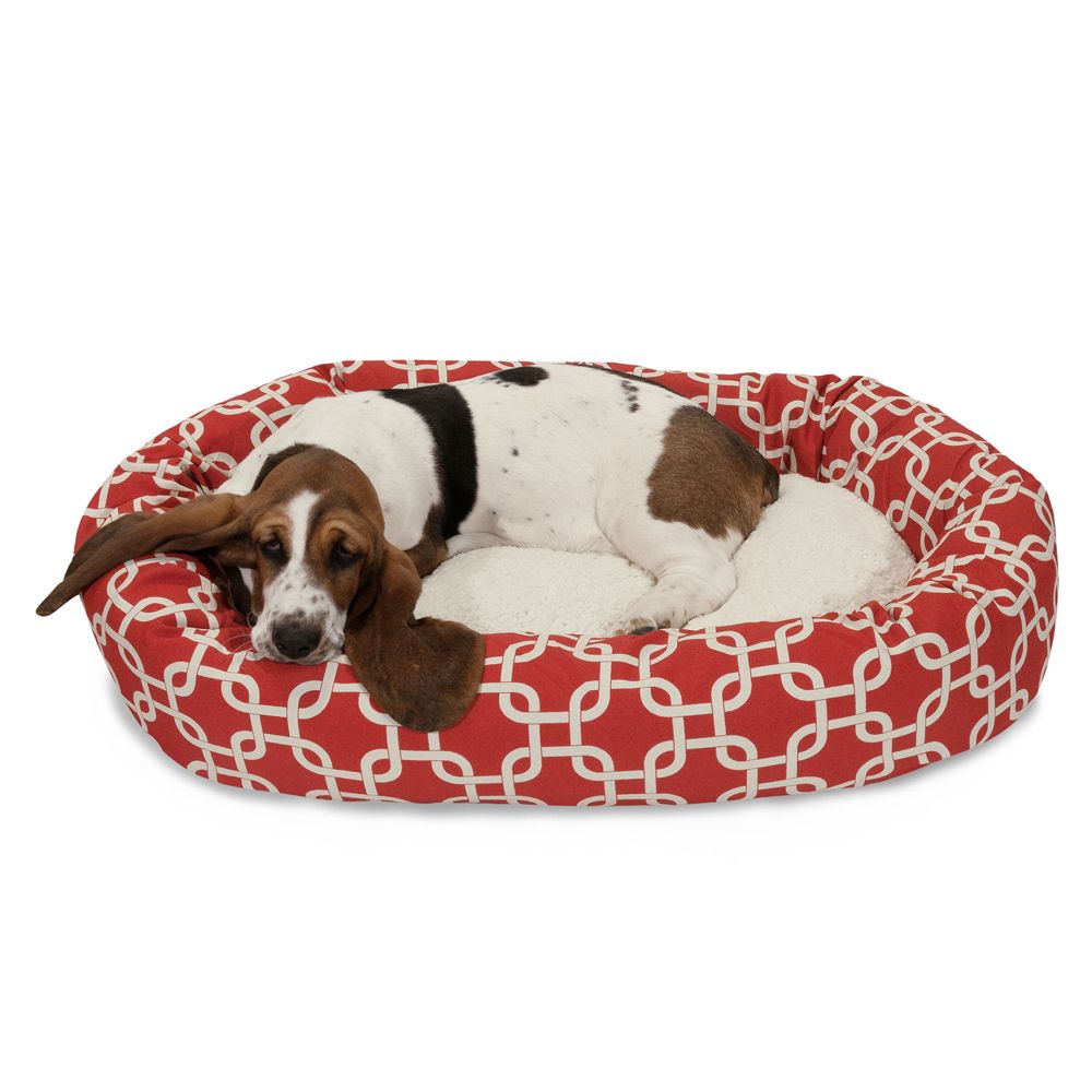Give your pet 360 degrees of comfort with Majestic Pet Products Bagel Pet Dog Bed. Designed for both comfort and style, the bolster and cushion are made of a durable material. The base of the bed is made of a heavy duty, water proof 300/600 Denier to prevent the bed from sliding and to keep it safe from any spills or accidents.