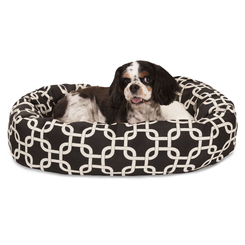 The Chevron Sherpa Bagel Bed by Majestic Pet provides superior comfort for your dog. This bed makes a fashion statement in any room, the bolster is made of a durable 7 oz. Outdoor treated Polyester with water & stain resistance and a Sherpa center cushion. The bed is filled with Super premium High Loft Polyester Fiber Fill, which ensures a snug rest anywhere in the house. To keep the bed safe from accidents or spills, the base is made of a heavy duty, water proof 300/600 Denier. Our bagel beds are easy to clean
