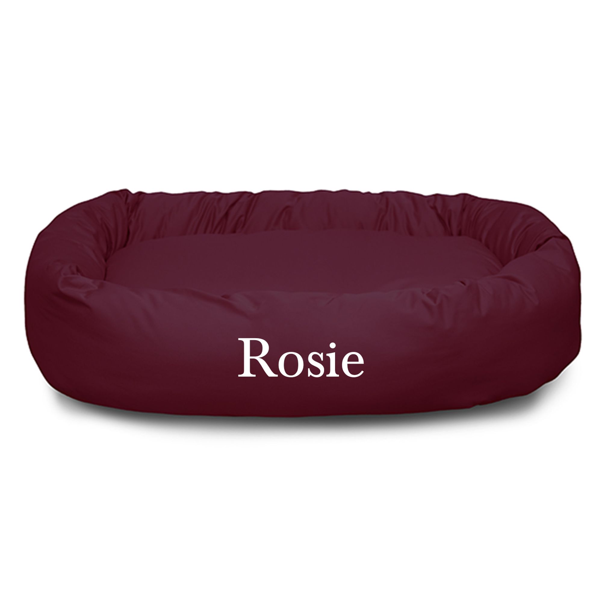 Designed for both comfort and style, the bolster is made of a durable 7oz. Poly/cotton Twill with a Sherpa center cushion. The entire bed is stuffed with Super Premium High Loft Polyester Fiber Fill. The base of the bagel bed is made of a heavy duty, water proof 300/600 Denier to prevent the bed from sliding and to keep it safe from any spills or accidents. Our bagel beds are easy to clean - just place the entire bed in the washer on gentle cycle and air dry.