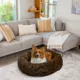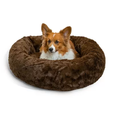 Give your pet more than just a dog bed! Best Friend's by Sheri is the original creator of the most popular dog bed that has surfaced on the internet in recent years: The Original Calming Donut Dog and Cat Bed. This innovative cuddler design provides better sleep, supports joints, and offers a calming, self-warming effect with luxuriously soft faux fur. The donut cuddler is carefully crafted with a lofty, supportive filling, allowing your pet to feel instantly enveloped in premium comfort. The polyfill in our calming dog bed keeps its loft up to 3 times longer than standard pet beds, providing longer comfort and support. Perfect for a deeper night's rest or a refreshing daytime nap, our soothing dog bed is designed to provide optimal neck, joint, and muscle support. For dogs and cats who like to burrow, the bed creates a perfect space for cuddles and top-notch snuggling, and the tall bolsters help create a calming sense of security. With a water and dirt-resistant bottom, our calming pet bed helps prevent messes from reaching your floors. When accidents happen, the bed shell is machine washable for easy cleanup. Follow the instructions on the label to ensure proper care.