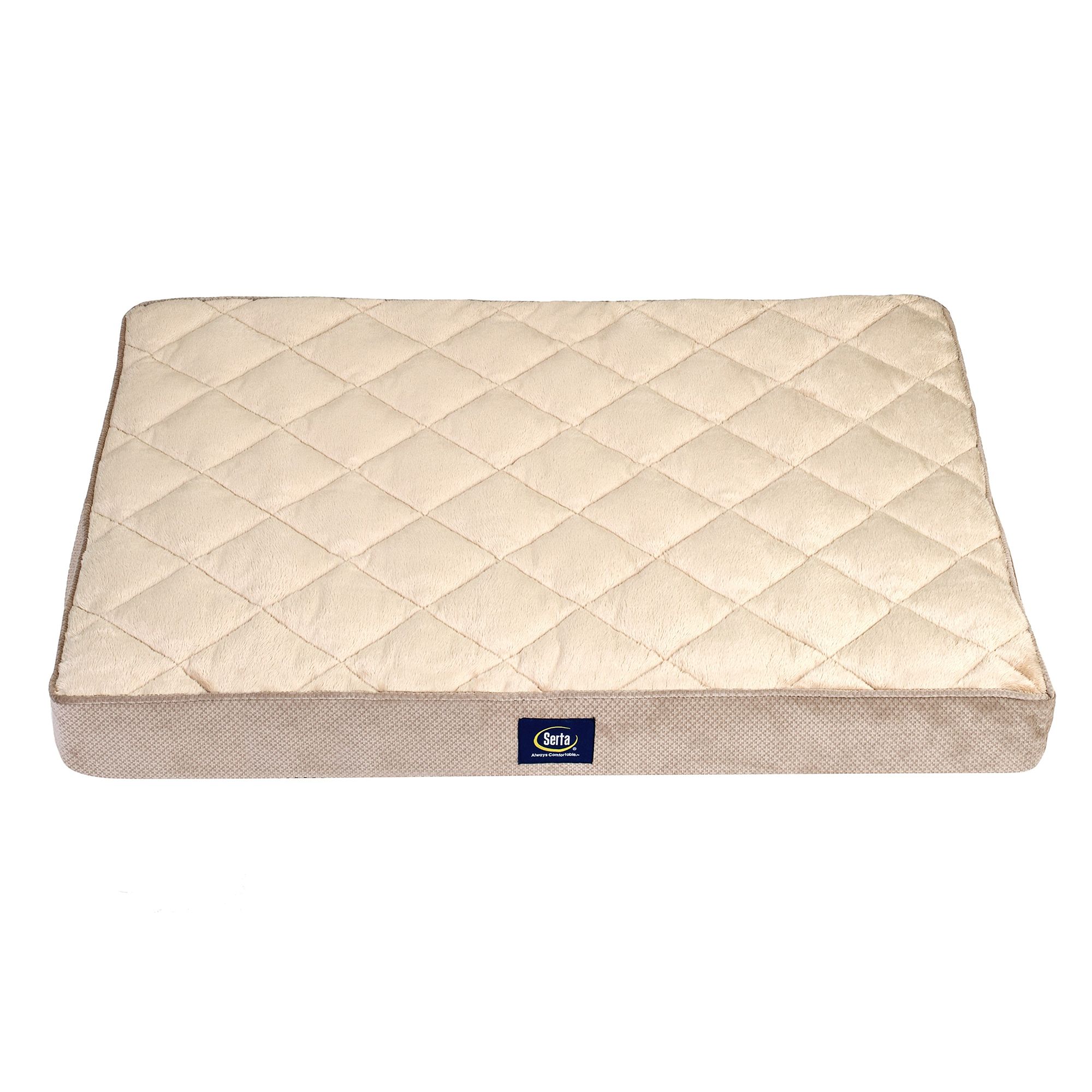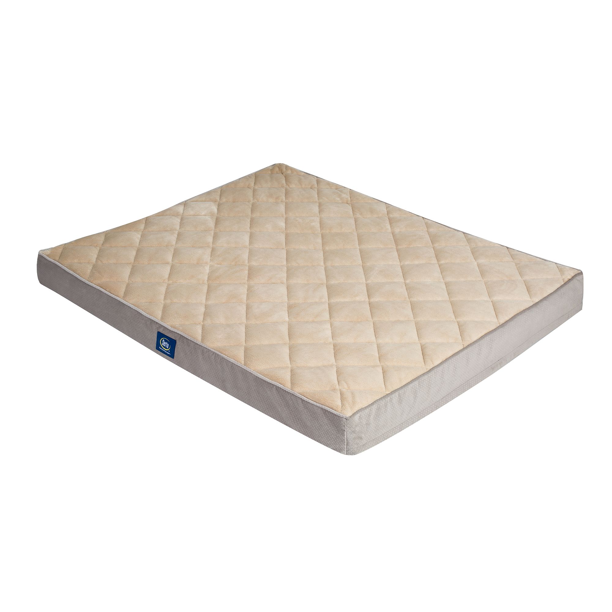 Features: Made using the same advanced comfort and support materials that made Serta the No. 1 mattress company in the United States. 4—inch premium—quality orthopedic "egg—crate" foam sleep surface is ideally suited for aging pets and those with hip or joint pain. Extra—high bolsters on three sides provide exceptional comfort with plenty of head and back support. Available in multiple color options and two sizes to complement a wide range of decors. The cover is removable and machine washable for easy care; designed and manufactured in the USA using imported and domestic components. Sleep surface dimensions: 27 x 34