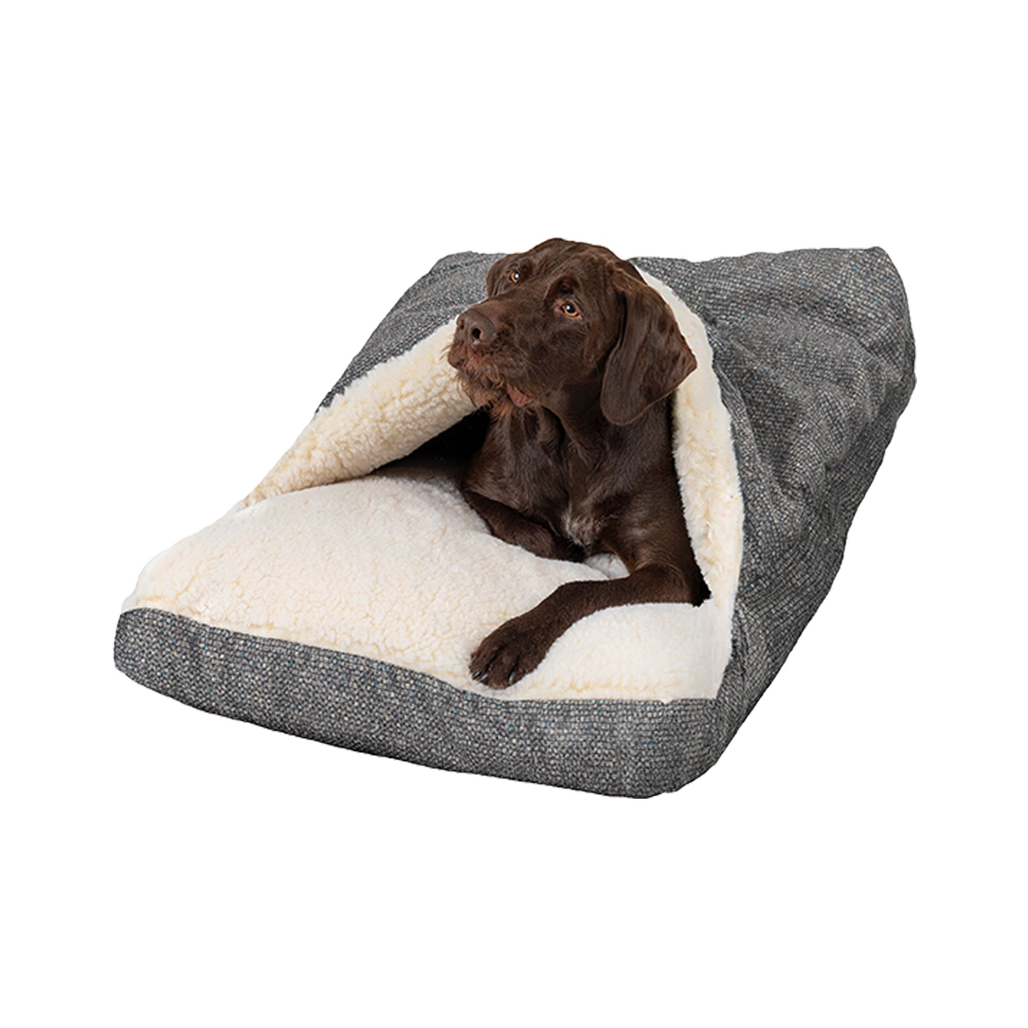 Description and Overview: Snoozer Luxury Poly⁄Cotton Orthopedic Rectangle Cozy Cave Pet Bed is now available in fashionable upholstery grade fabrics! The orthopedic Cozy Cave is a one–of–a–kind pet bed designed to give your pet a cozy place to stay warm and comfortable. This nesting pet bed features a soft poly⁄cotton exterior and is great for pets who enjoy staying under the covers. Some dog breeds, such as dachshunds and terriers, prefer the extra feeling of security by wrapping themselves up in bed, thus making a cave like dog bed the perfect choice. The luxury orthopedic Cozy Cave gives your pet a place of their own to relax with a feeling of safety for less anxiety and more restful sleep. Our soft and supple sherpa interior provides plush comfort and has 3" of dense orthopedic foam and topped with 1" of poly⁄cedar for added cushion and helps dogs who have aches and pains. Our orthopedic Cozy Caves have machine washable covers. Rectangle Cozy Caves are available in 4 sizes and multiple solid colors to match any decor. Cut, sewn and assembled in USA. Snoozer continues to bring high fashion and high quality to you and your furry friends by offering the very best in comfort, style and durability. Snoozer, By Dog People; For Dog People.