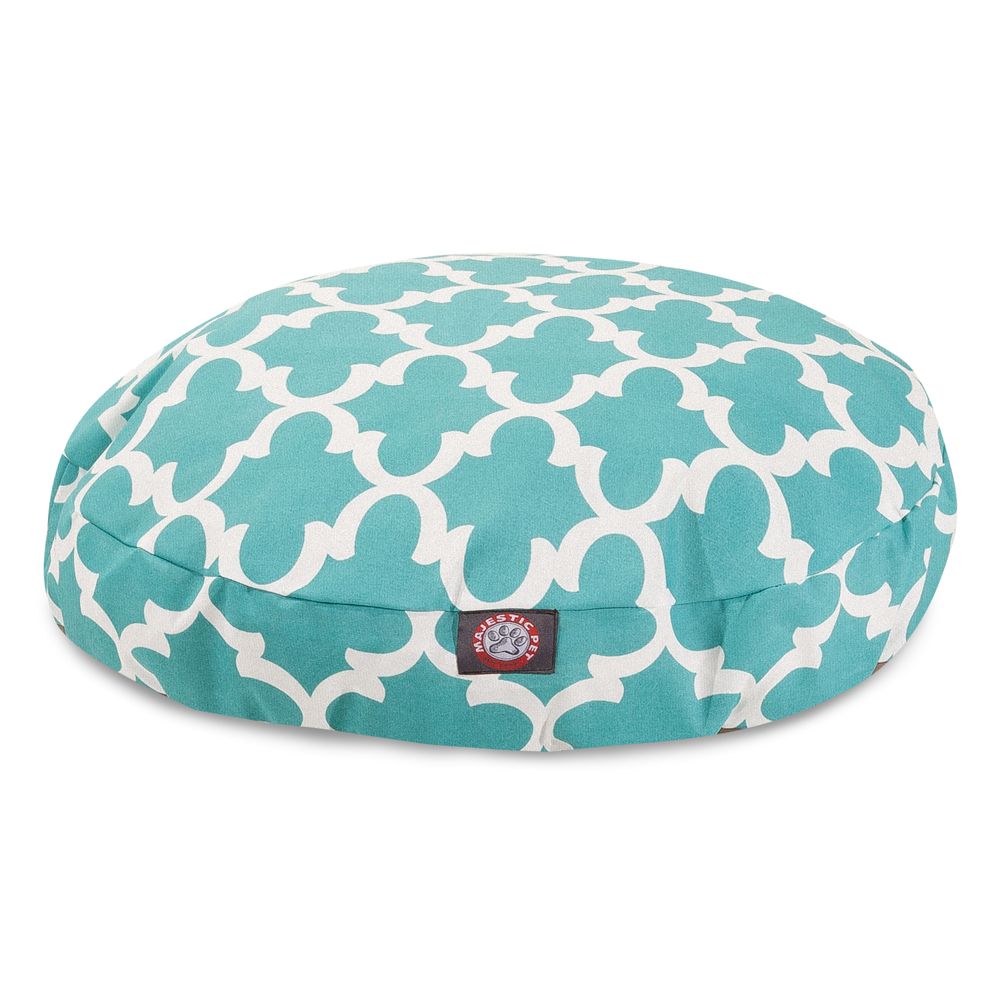 Let The Teal Links Pet Bed add style and comfort to your pet's life. The Majestic Pet Teal Links Round Pet Bed is the perfect combination of style, function and comfort. It features a removable zippered slipcover that is woven from durable Outdoor Treated polyester, with 1000 hours of UV protection. The base of the bed is made of heavy duty waterproof 300/600 Denier fabric, which allows you to move your pet wherever you are, inside or out. Each bed is filled with a super plush fiberfill that provides ample amounts of comfort.