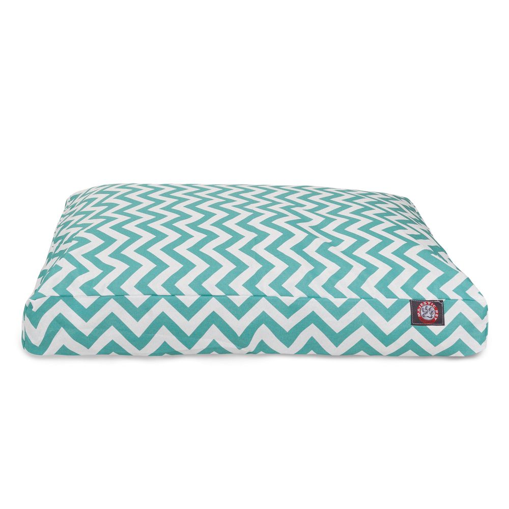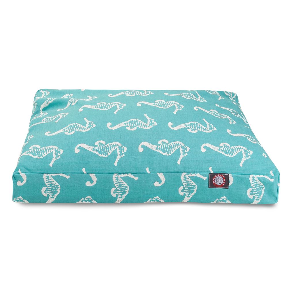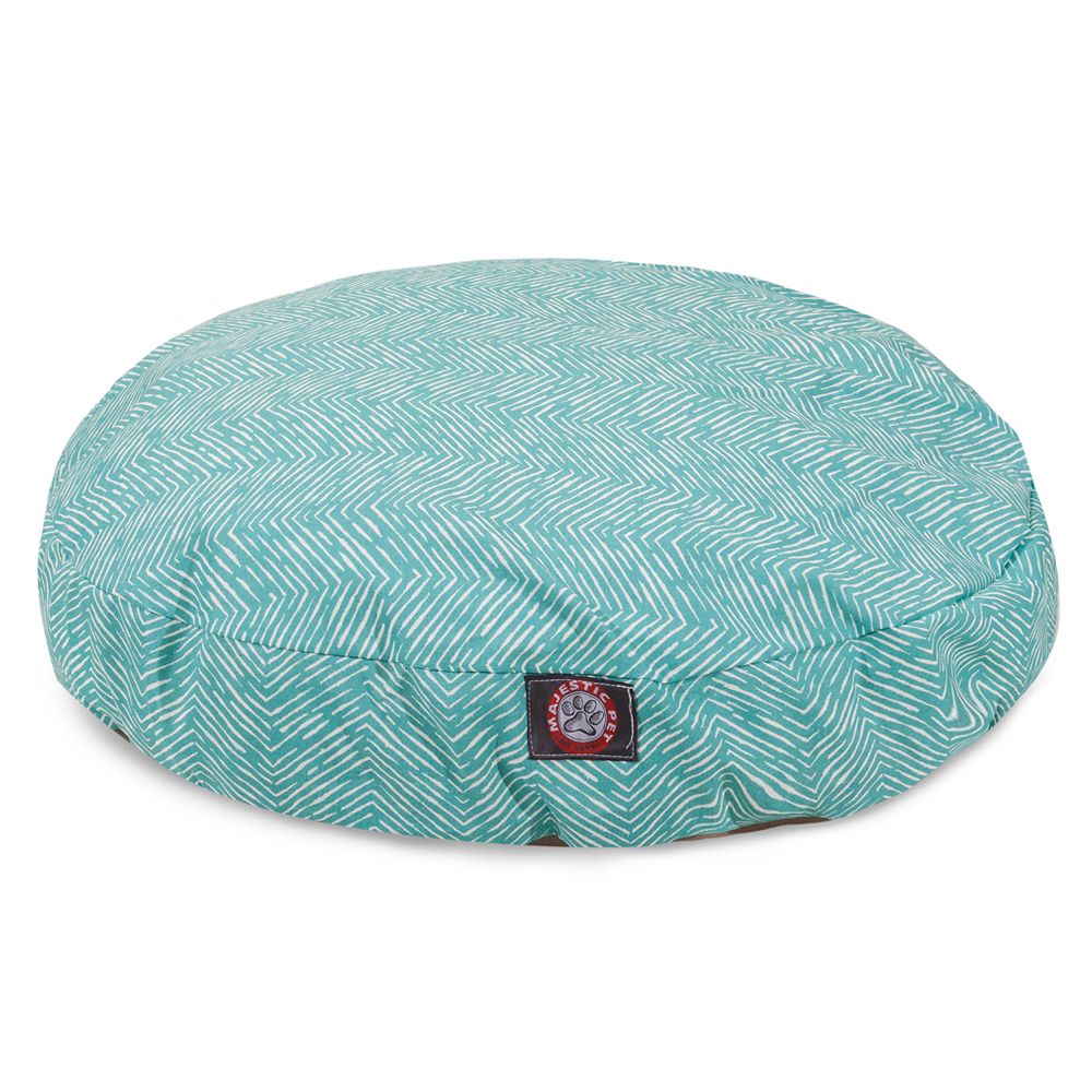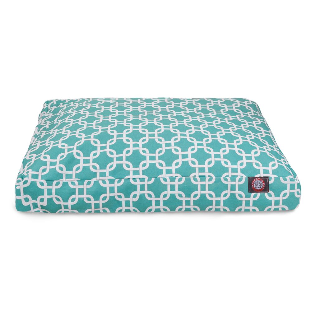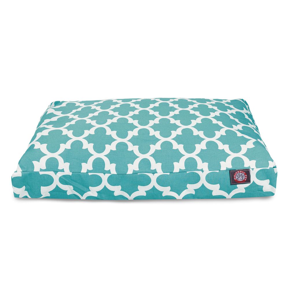 The Teal Navajo pet bed is the perfect way to spoil your pet with comfort. The Majestic Pet Teal Navajo Rectangle Pet Bed is the perfect combination of style, function and comfort. It features a removable zippered slipcover that is woven from durable Outdoor Treated polyester, with 1000 hours of UV protection. The base of the bed is made of heavy duty waterproof 300/600 Denier fabric, which allows you to move your pet wherever you are, inside or out. Each bed is filled with a super plush fiberfill that provides ample amounts of comfort. To wash: Spot clean the slipcover with a mild detergent and hang dry.