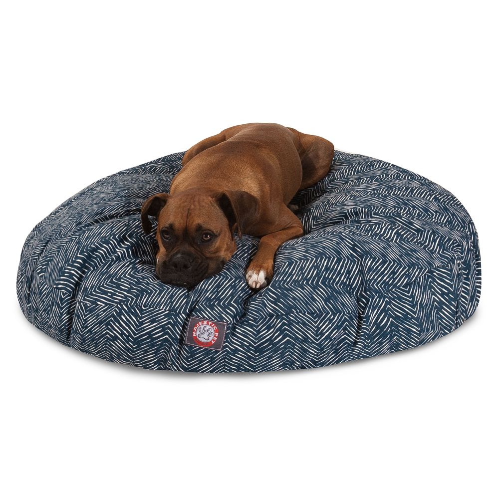 Let The Towers Pet Bed add style and comfort to your pet's life. The Majestic Pet Towers Round Pet Bed is the perfect combination of style, function and comfort. It features a removable zippered slipcover that is woven from durable Outdoor Treated polyester, with 1000 hours of UV protection. The base of the bed is made of heavy duty waterproof 300/600 Denier fabric, which allows you to move your pet wherever you are, inside or out. Each bed is filled with a super plush fiberfill that provides ample amounts of comfort.