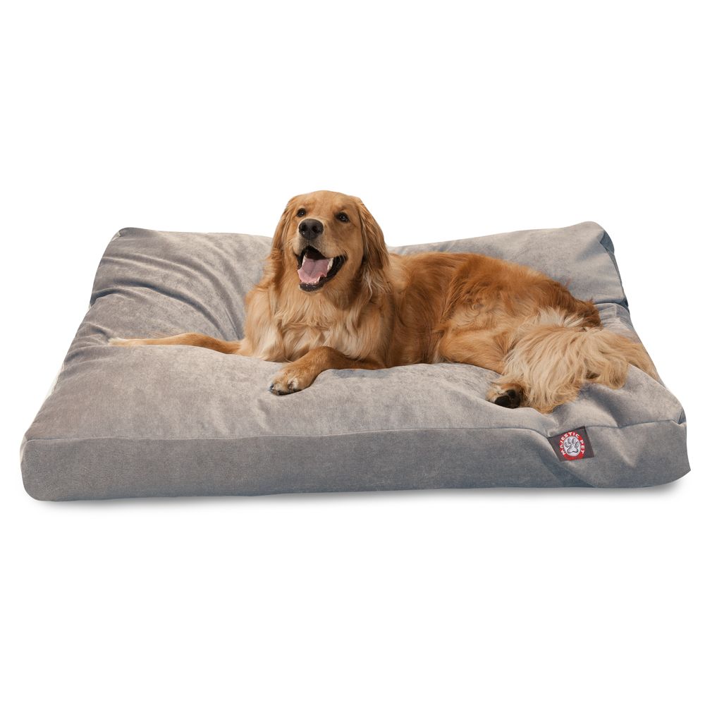 Show how much you care by giving your pet a bed that might be more comfortable than your own. The Majestic Pet Villa Collection Pet Bed is the perfect combination of style, function and comfort. It features a removable zippered slipcover that is woven from 100% polyester micro velvet and the base of the bed is made of heavy duty waterproof 300/600 Denier fabric. Each bed is filled with super plush fiberfill that provides ample amounts of comfort. To wash: Spot clean the slipcover with a mild detergent and hang dry.