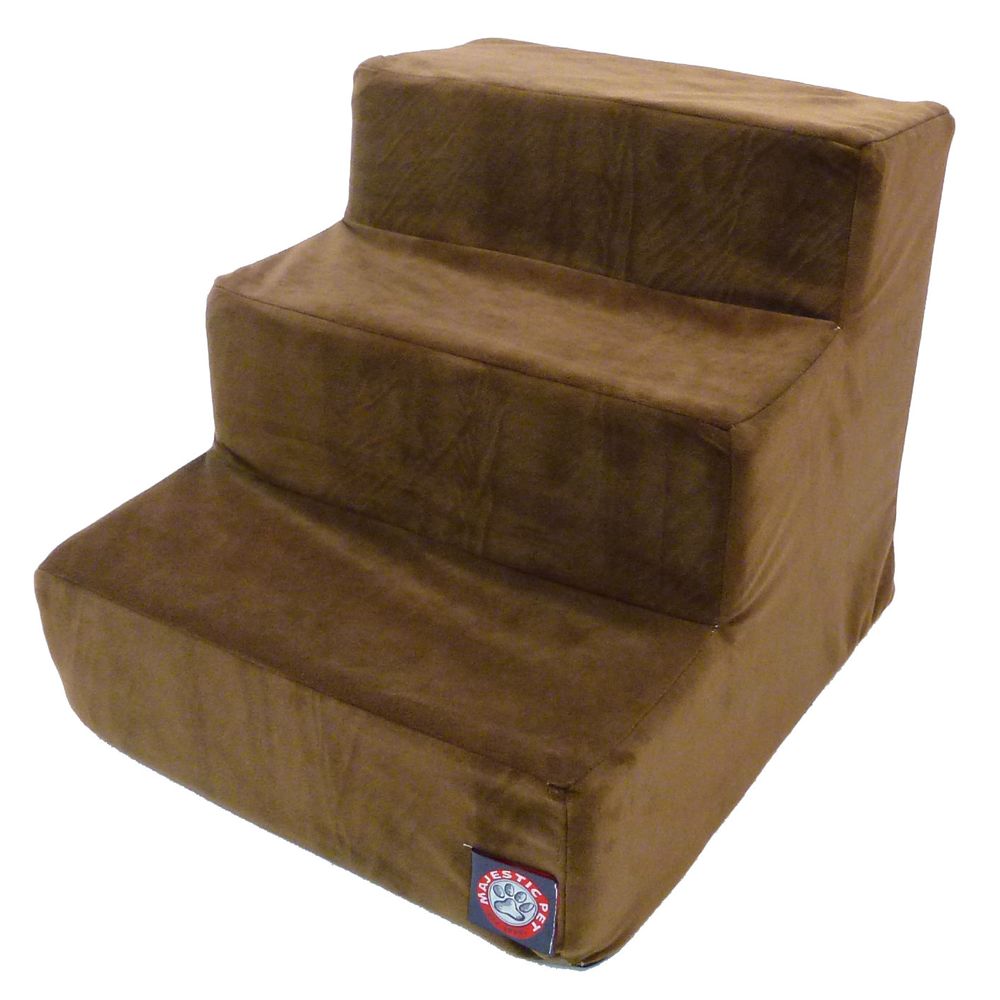 DESCRIPTION Majestic Pet Products 4 Step Chocolate Suede Pet Stairs are perfect for dogs or cats suffering from joint problems, aging issues, hip dysplasia, arthritis or other disabilities. Majestic Pet Stairs will enable your dog or cat to navigate onto furniture, window sills or beds with ease. These stairs are made with a faux suede slipcover that zips off for easy cleaning and a 300/600 Waterproof Denier Base, which make them great for any surface.