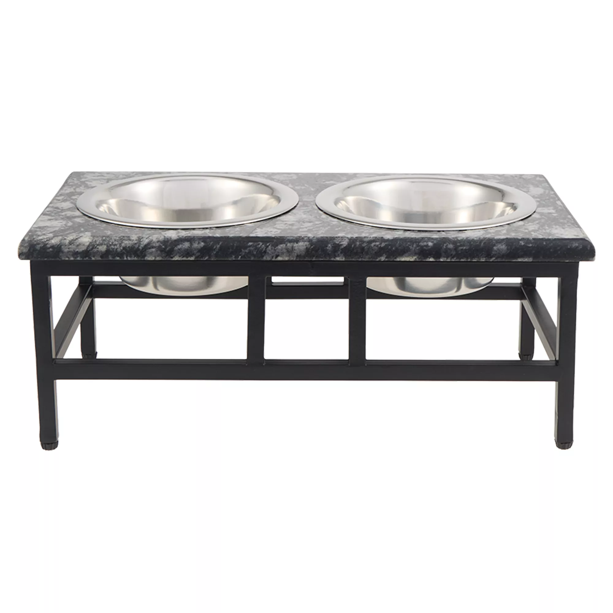 Top Paw® Grey Stone Top with Metal Legs Elevated Double Diner Dog Bowls