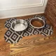 Description: Fido's food area never looked so tidy and dapper! These stylish dog bowl mats are as functional as they are adorable. Designed to help keep your floors clean and dry, and machine washable for when Fido gets a little messy. Beautiful, high–resolution printed designs. Knitted polyester surface with a durable rubber backing to help it lay flat and stay in place. Machine washable (gentle) and dryable (on low or air dry).Proudly made in the USA Recommended for indoor use only. Washable, Non–Slip, Adorable.