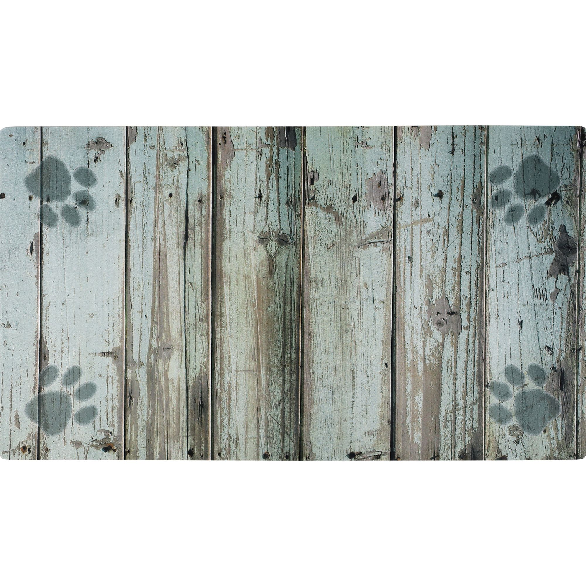 Keep your pet's bowls in a stylish place that helps to avoid spills with this Drymate Tan Distressed Wood with Paws Placemat. This great-looking placemat provides plenty of space to house your pet's food and water bowls, and features a cool distressed wood look as well.