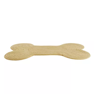This Top Paw Tan Rope Fabric Placemat makes the perfect landing place for your dog's food and water bowls. This placemat is made from thick and sturdy rope fabric, and takes the shape of a big, juicy dog bone. Dogs love bones, and you'll love the way this spacious placemat houses your pup's bowls. Only at PetSmart.