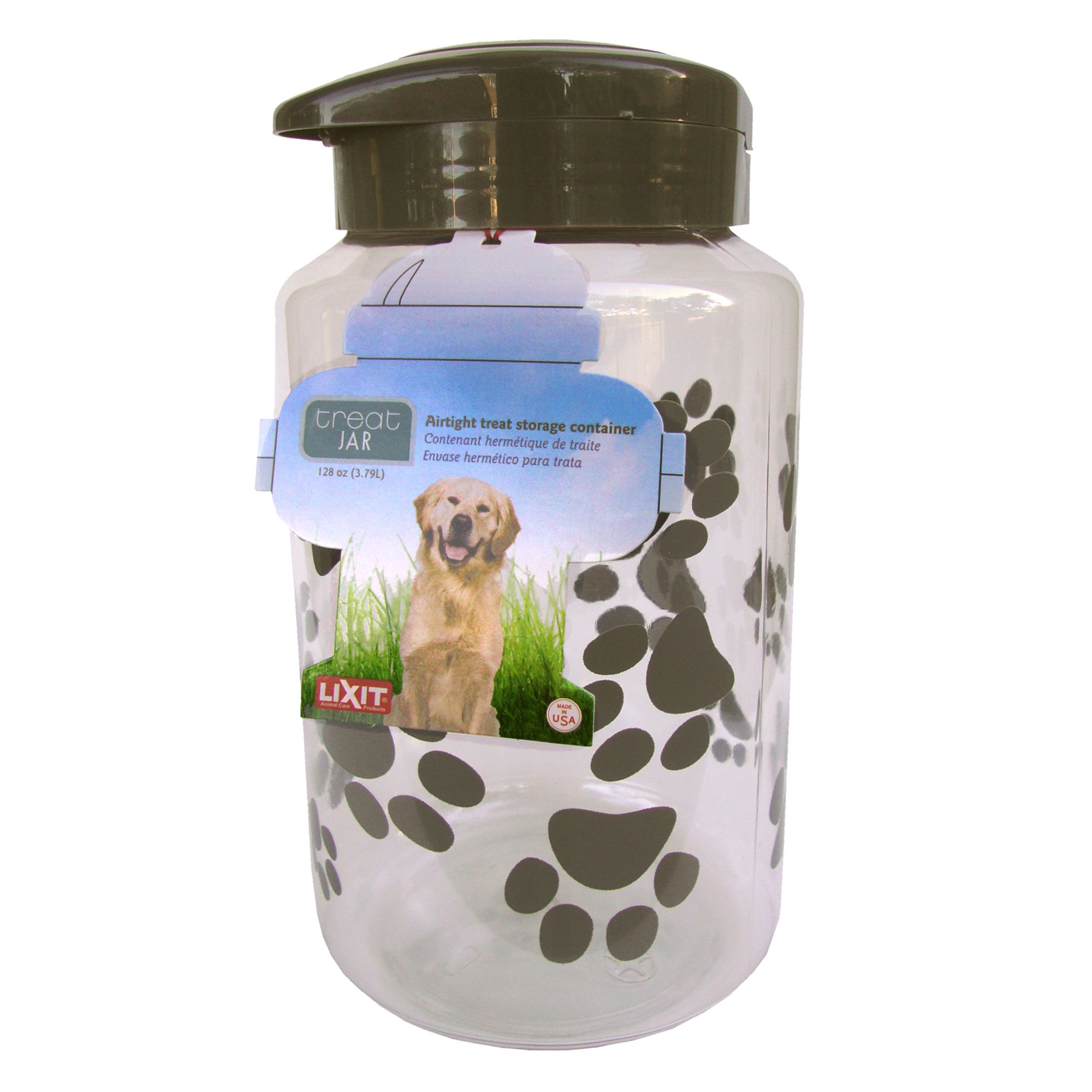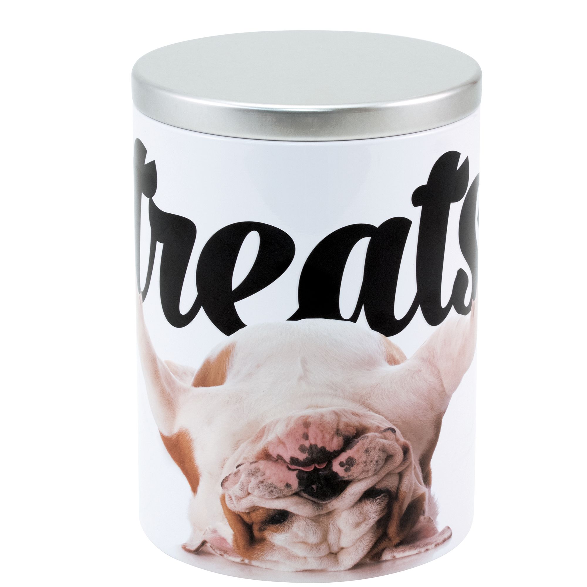 PawPrints Treat Containers are a playful way to keep your pet's treats, vitamins or supplements fresh and accessible. The tight-fitting lid keeps odors in and pests out. Containers are available in small and large for treats of all sizes. These containers feature a sturdy tin construction and sit right on your countertop, and keep treats fresh until they're gone with a tightly-fitting lid. They are also adorably decorated with dog-inspired words and dogs in a fun color combo.