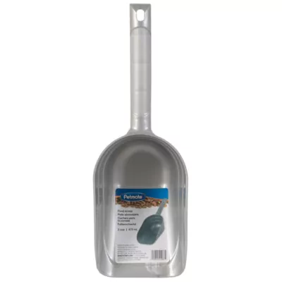 The Petmate® Pet Food Scoop is a durable plastic food scoop made with Microban antimicrobial protection o help prevent the growth of mold; mildew; and other bacteria that could ruin your pet's food. The strong; long handle makes it easy for you to scoop and is designed to hold up under the weight of your pet's food. To help with accurate portion control; the Petmate Pet Food Scoop includes molded-in indicator lines that make it easy for pet parents to manage the amount of food you put in your pet food bow. Made proudly in the USA; and made with 25% recycled content making it an eco-friendly option. Cat/dog food scoop capacity is 2 cups.