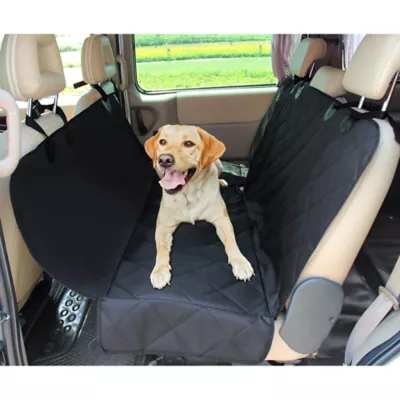 Description: Seat cover designed to protect the interior of your vehicle from your furry. Made of durable 600D oxford fabric that is waterproof. Keeps dirt, spills, scratches and fur off of your seats. Easy to install as the straps fit over the headrests and tuck into the seat anchors. Features an adjustable seatbelt to keep your paw–tner in place.