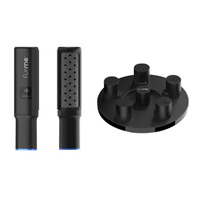 Description and Overview: Floor or table mounted storage solution for your furMe attachments in a bonus pack with a new attachment for your furMe Grooming Vacuum: cloth lint/fur remover wand. This mount allows easy access to tools during grooming or cleaning and keeps your space organized. Holds all 5 attachments that come with your furMe, plus an additional 6th attachment. The included reusable lint/fur remover wand is excellent for keeping your cloth surfaces like upholstered chairs and couches free of your pet's hair. After grabbing all the loose fur, simply twist the cover back and forth over the roller and watch the hair get sucked into the vacuum. No sticky tapes or adhesive! Slide this roller one way on your surface and all the hair is trapped inside. The furMe lint/fur remover wand is 100% reusable and even works on small areas withthe furMe vacuum off.
