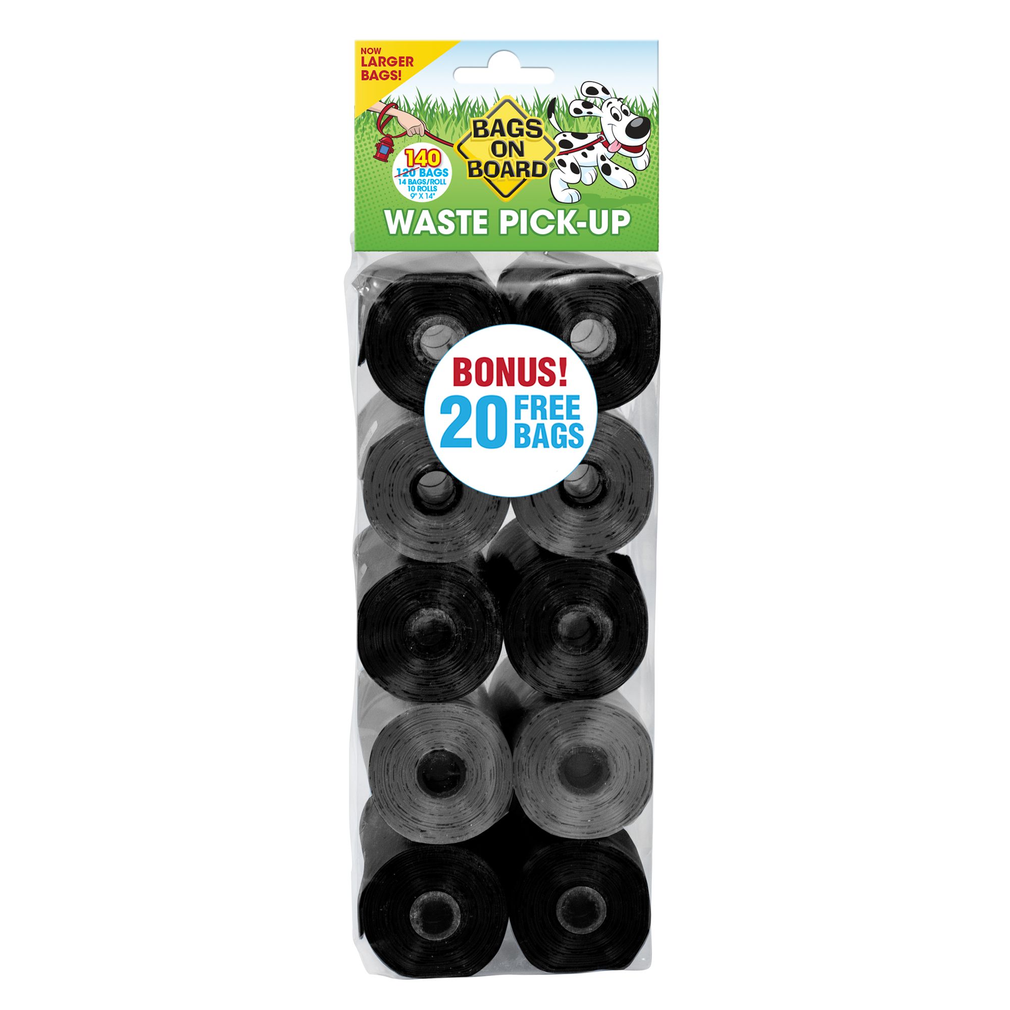 Dispenser holds 15 large dog poop bags Attaches easily to most standard or retractable leashesDouble-sealed seams to make them strongerLeaf proof9 x 12 in bags