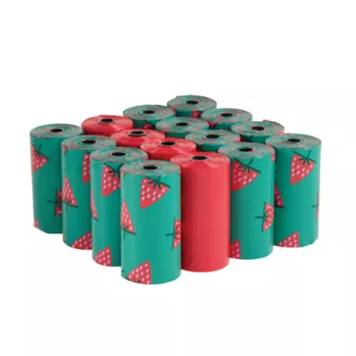 Picking up after your dog is easy with these Top Paw® Extra-Thick Strawberries Waste Bags. These strong and sturdy waste bags, 60 in all, feature a fun strawberry-centric design as well as a pleasing sweet honeysuckle scent. Best of all and most importantly, they make cleaning up after your dog while the two of you are out on walks convenient and easy. Only at PetSmart.