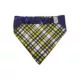 Features: Made with Easy Care Stretch Polyester fabric. Constructed with a scrunchy band that goes over the dog's head for easy on and off. Blue/Yellow Plaid design on back. Completely washable. Can be placed in the dryer or lay flat to dry.