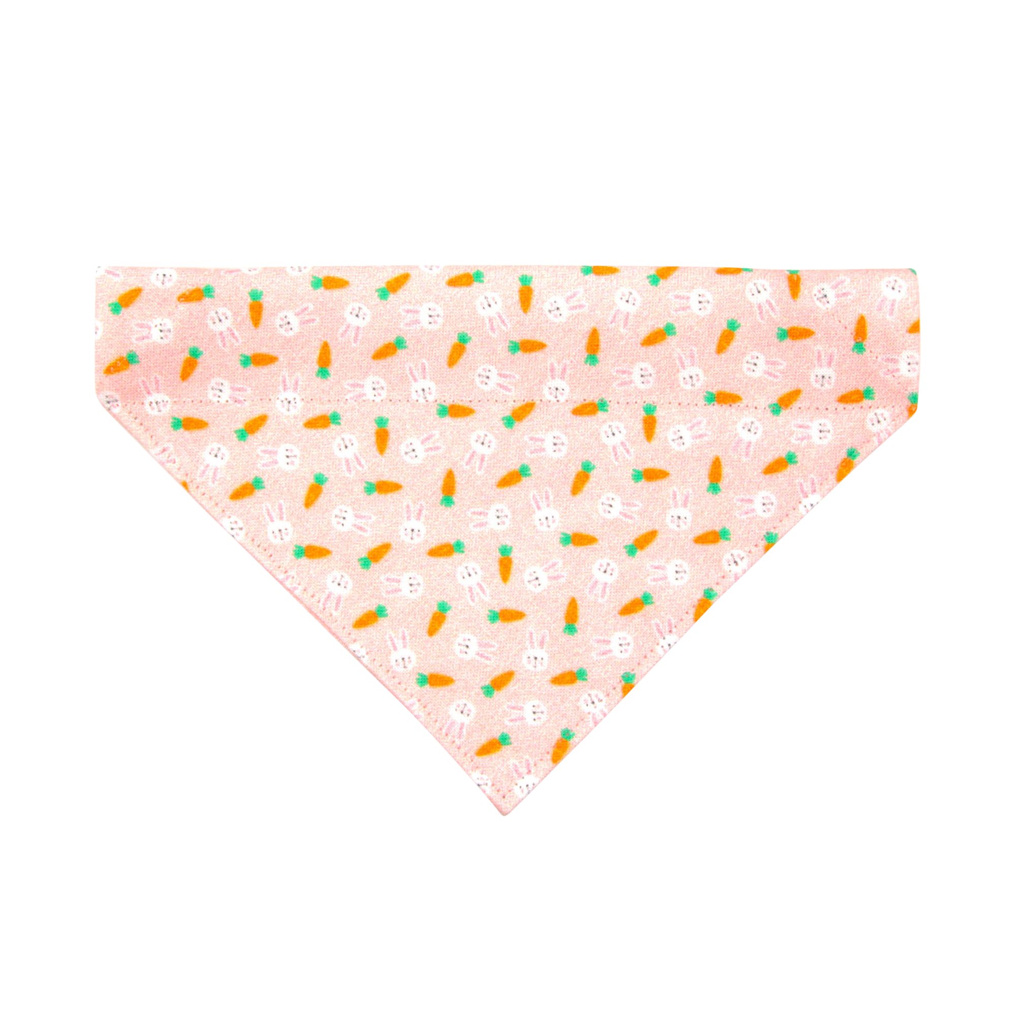 This adorable Bunnies & Carrots Blue Easter Slide-On Cat Bandana from Made By Cleo is the perfect "effortlessly cool" accessory for cats and small dogs who'd rather be out adventuring and NOT fussing over their wardrobes. The slide-on/over-the-collar bandana format provides maximum comfort and ease for pets and zero fuss for the owner. No need to figure out how to tie it artfully or worry about it coming loose. Just slide it on the collar and go. Best suited for adult cats and small dogs. Not recommended for pets with neck sizes under 7 inches (i.e. small cats/kitten and miniature dog breeds). Collar not included. The matching cat collar and bow tie are also available for purchase separately.
