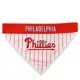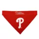Philadelphia Phillies Pet Bandana. This bandana features a screen-printed team logo and name on 1 side & an embroidered team logo on the other side. Officially licensed and ready for game day, its comfortable 100% poly-cotton keeps it wrinkle free and easy to clean. Great for parties, BBQs, tailgating and even Halloween as a pet costume.
