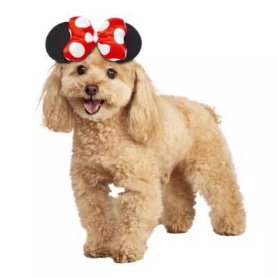 Bring a little of that Disney magic home. Dress your puppy in the Minnie Mouse Costume for Pets. It features two large black ears, just like Minnie's ears, and a red hair bow with white polka dots designed to look like the one worn by Minnie.