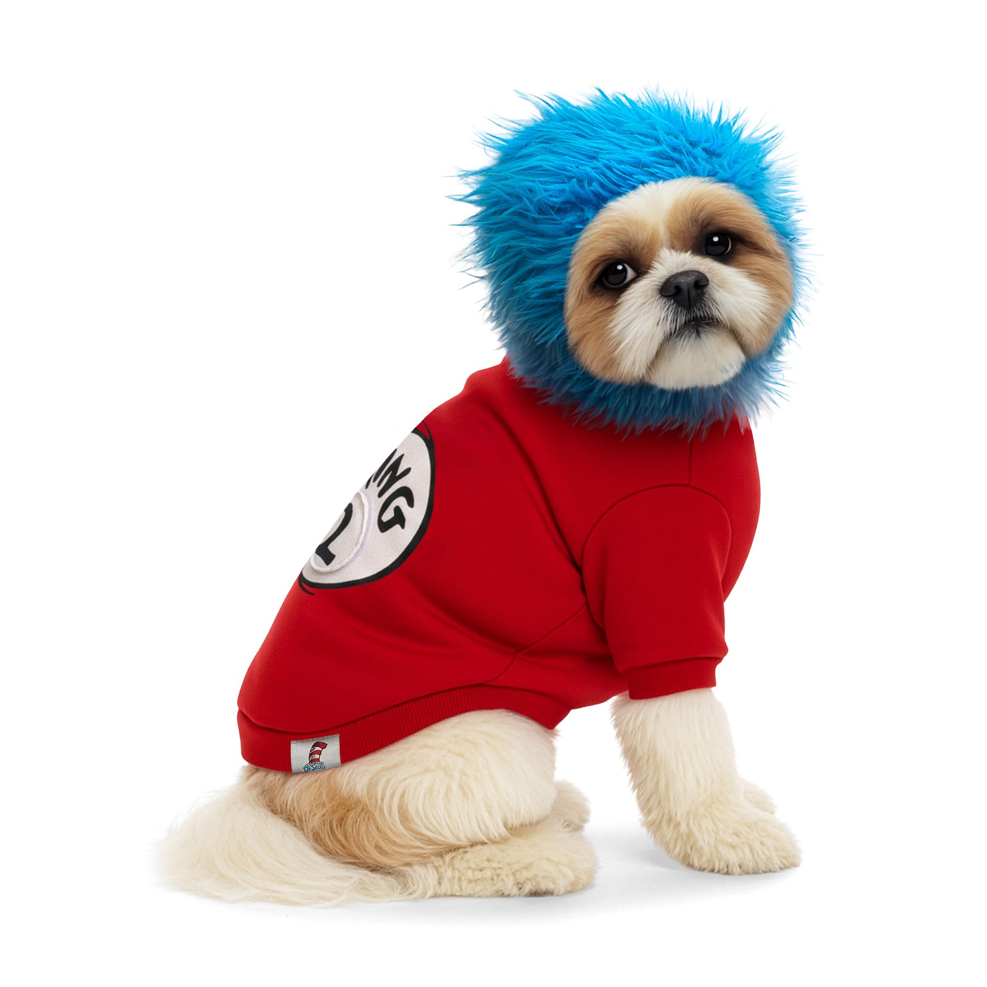 Description and Overview: Turn every walk into a whimsical adventure with this Cat in the Hat pet hoodie. The playful design, complete with the famous striped hat and bright red bow, makes every moment feel like a page from a favorite tale. Cozy fabric keeps them comfy while the look keeps everyone grinning. It's an instant dose of cheerful, storybook magic.