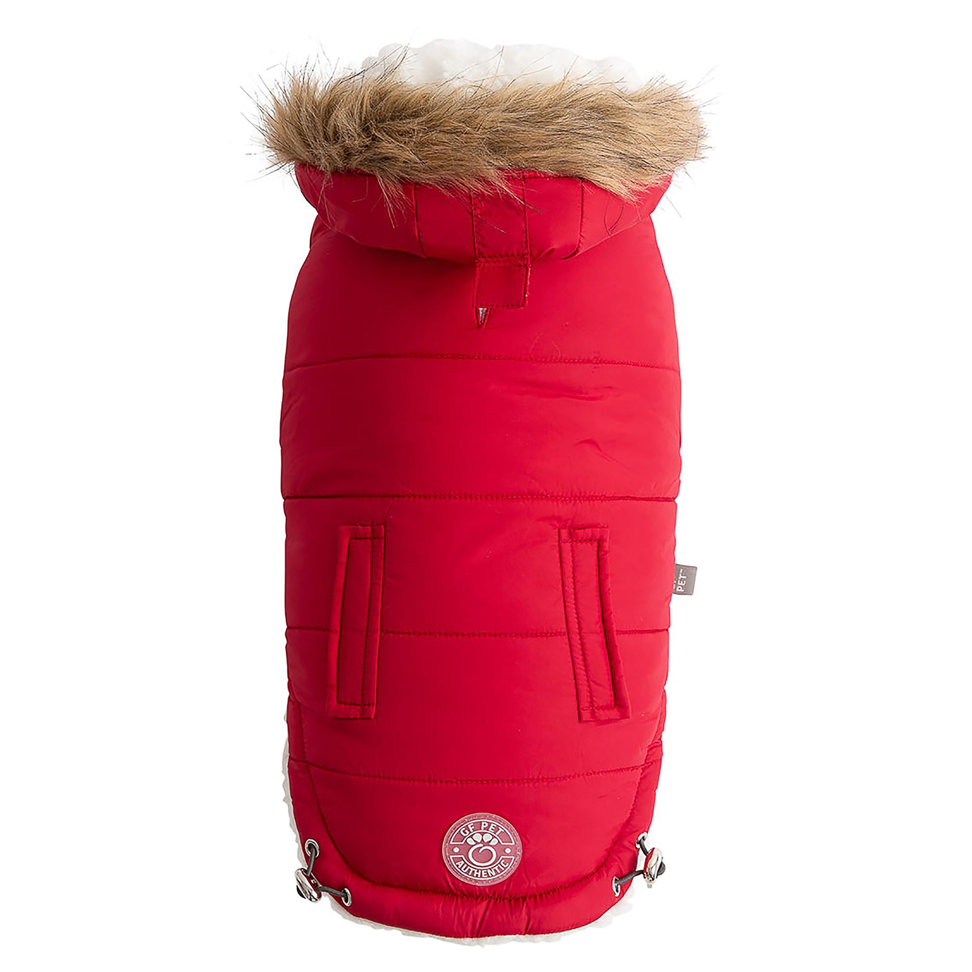 The GF PET Elasto-FIT Arctic Parka is sumptuously puffy, snuggly warm and luxuriously gorgeous! With fresh colors and a tackable hood, this parka bridges generations, appealing to all age groups of dogs and owners. Enjoy every bit of warmth and comfort you have come to expect from GF PET in this Arctic Parka sensation! Deep faux pockets, matching lined hood, and GF PET signature contrast pocket tabs and binding. Turn heads at playtime of while strutting down the street, and sink into the warm and comfy popcorn sherpa fleece lining. Water repellent and super adjustable, with patented Elasto-FIT technology! Designed dogs who want it all!