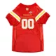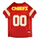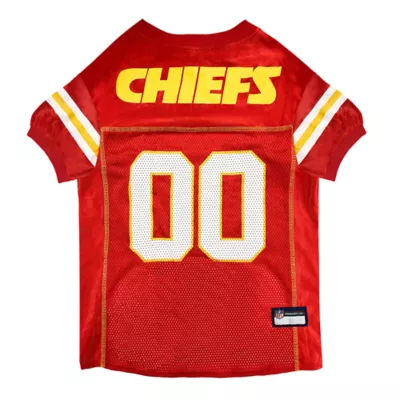 DESCRIPTION Let your four-legged mascot show some love for their favorite football team with the Pets First NFL Kansas City Chiefs Mesh Dog & Cat Jersey. They'll be ready for game day in this jersey sporting the official colors and name of the team you choose.