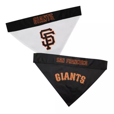 San Francisco Giants Pet Bandana. This bandana features a screen-printed team logo and name on 1 side & an embroidered team logo on the other side. Officially licensed and ready for game day, it's made from comfortable 100% poly-cotton that keeps it wrinkle free and easy to clean. Great for parties, BBQs, tailgating and even Halloween as a pet costume.