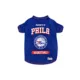 Cheer on your favorite team with your favorite canine sidekick sporting the Pets First Philadelphia 76ers Sport Team Dog T-Shirt. This shirt has your furry friend's favorite team name and logo screen printed in their iconic team colors, plus a woven jock tag label for your pet's name. Made from a durable poly-cotton fabric, this shirt is comfortable to wear and a breeze to clean.