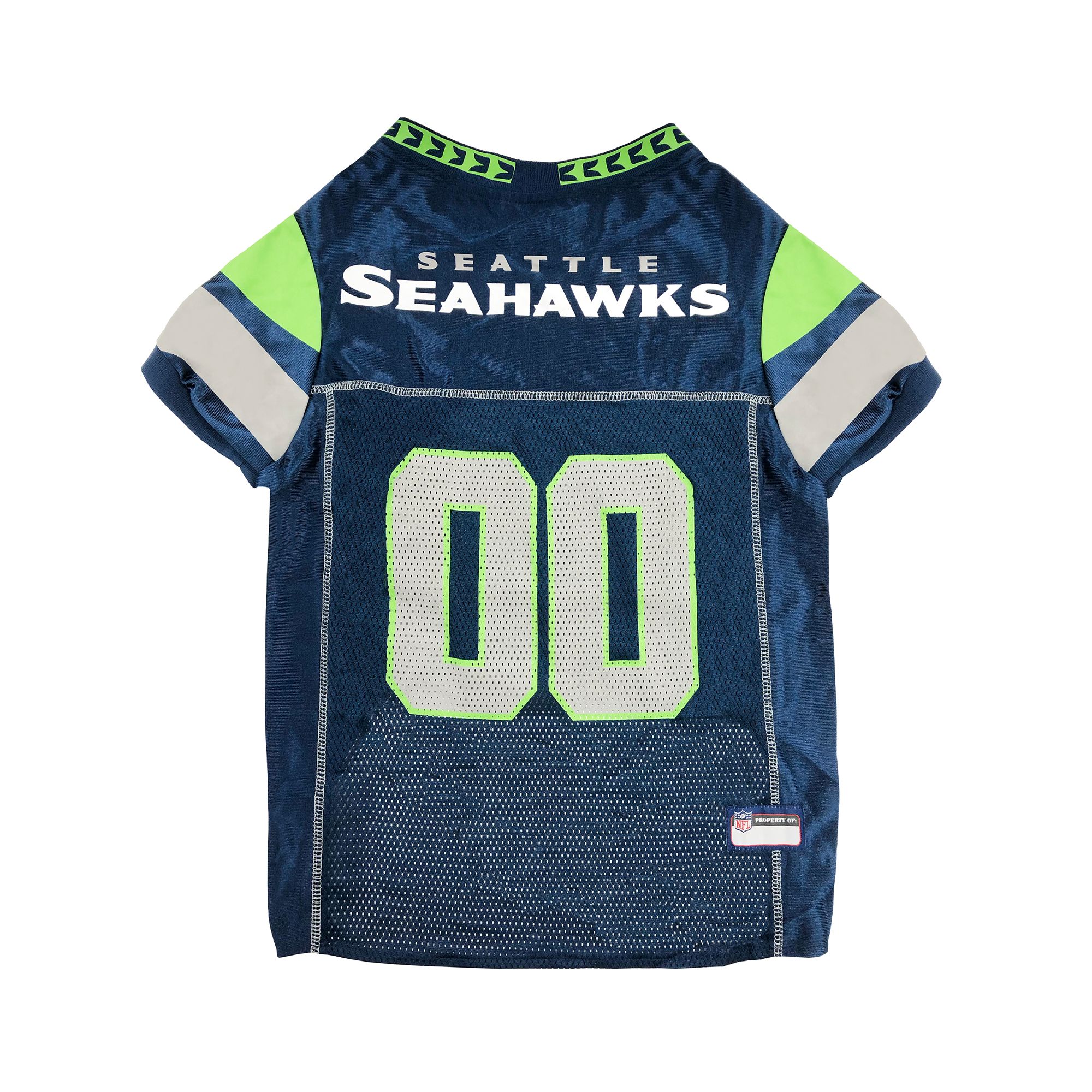 Let your four-legged friend show some love for their favorite football team with the Pets First Carolina Panthers NFL Mesh Dog Jersey. Your pet will be ready for game day in this jersey which features the official team colors, team name and number on the back and the team logo on the front. Made from satin and breathable poly mesh, this jersey is comfortable, durable and stylish. It also has sporty stripes on the sleeves just like the pros! The NFL "property of" jock tag allows you to add a touch of style and personalization, because win or lose, your pet will still be your MVP: Most Valuable Pet, that is! Remember to measure your pet for the paw-fect fit.