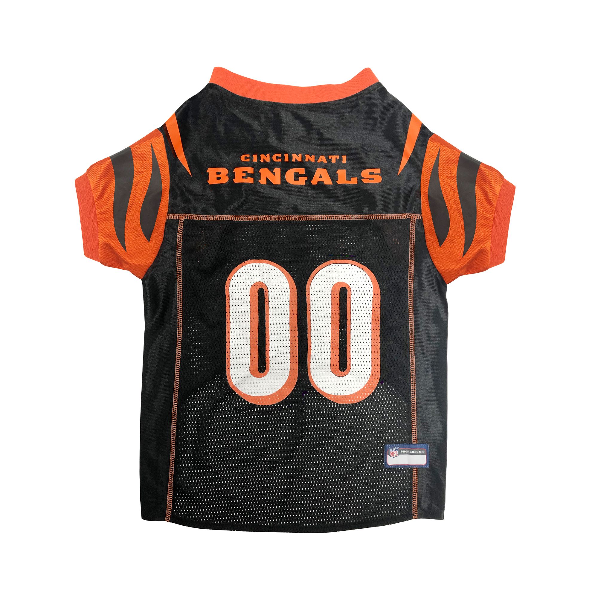 Let your four-legged friend show some love for their favorite football team with the Pets First Houston Texans NFL Mesh Dog Jersey. Your pet will be ready for game day in this jersey which features the official team colors, team name and number on the back and the team logo on the front. Made from satin and breathable poly mesh, this jersey is comfortable, durable and stylish. It also has sporty stripes on the sleeves just like the pros! The NFL "property of" jock tag allows you to add a touch of style and personalization, because win or lose, your pet will still be your MVP: Most Valuable Pet, that is! Remember to measure your pet for the paw-fect fit.