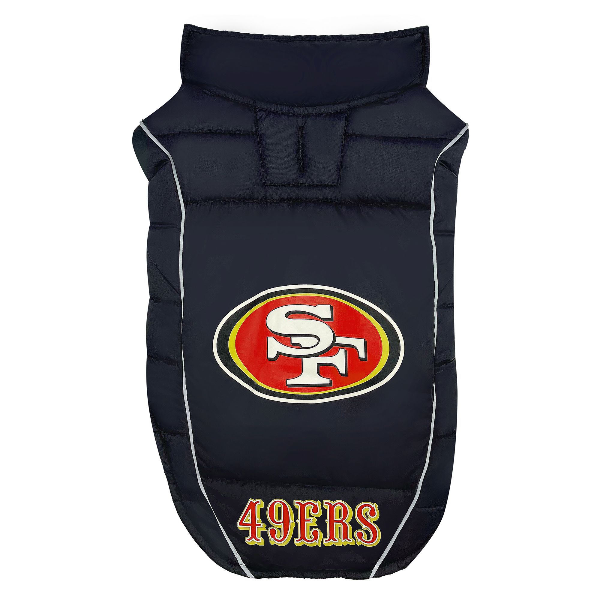 Puffer Vest! This puffer vest is not only cozy but has your favorite team colors and logo showcased on the back so everyone knows who your pet is rooting for!