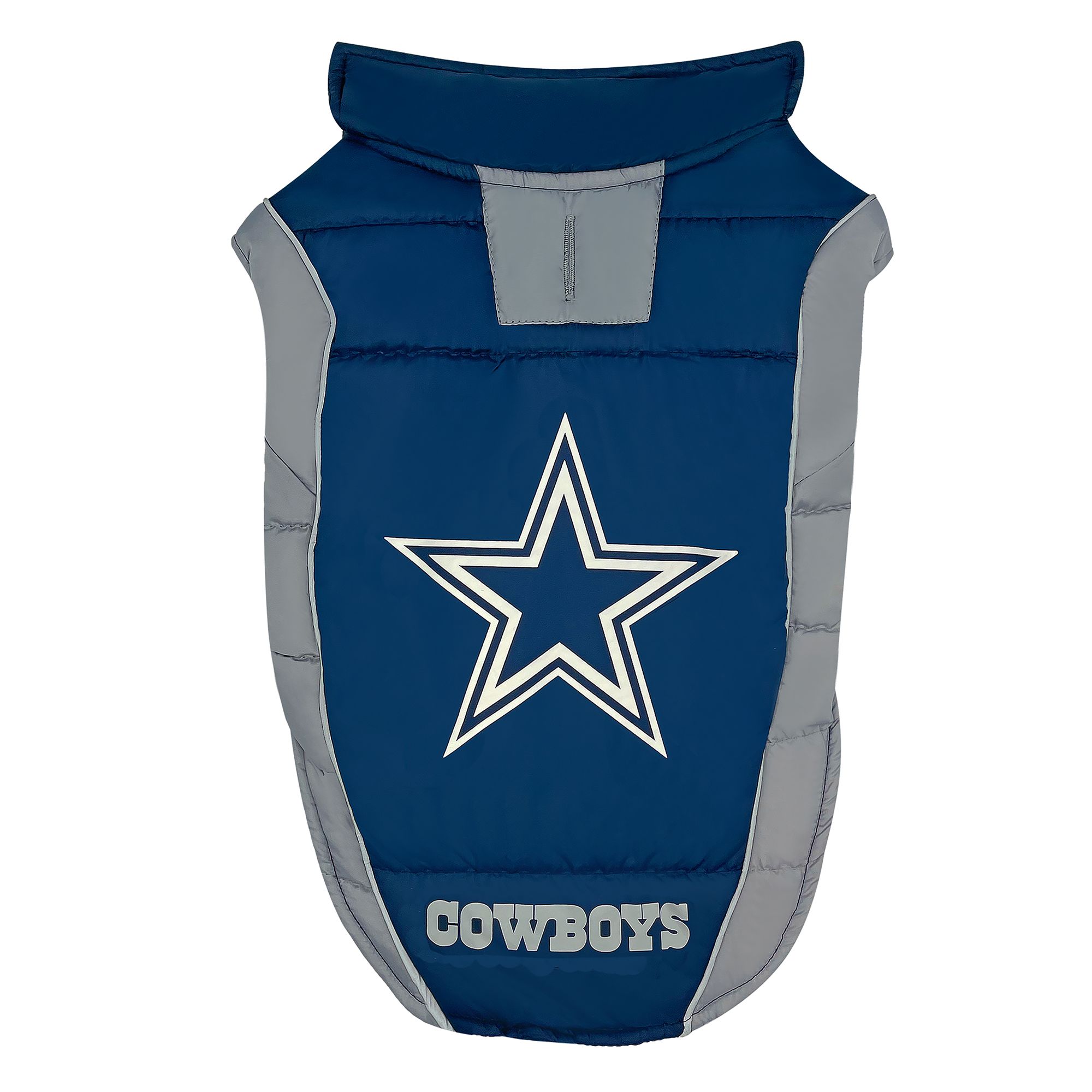 Puffer Vest! This puffer vest is not only cozy but has your favorite team colors and logo showcased on the back so everyone knows who your pet is rooting for!