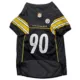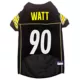 Let your four-legged friend show some love for her favorite football team with the Pets First NFL Player TJ Watt Dog Jersey. She'll be ready for game day in this jersey which features the official team colors, team name and number on the back and the team logo on the front. Made from satin and breathable poly mesh, this jersey is comfortable, durable and stylish. It also has sporty stripes on the sleeves just like the pros! The NFL "property of" jock tag allows you to add a touch of style and personalization, because win or lose, she'll still be your MVP - Most Valuable Pet, that is!