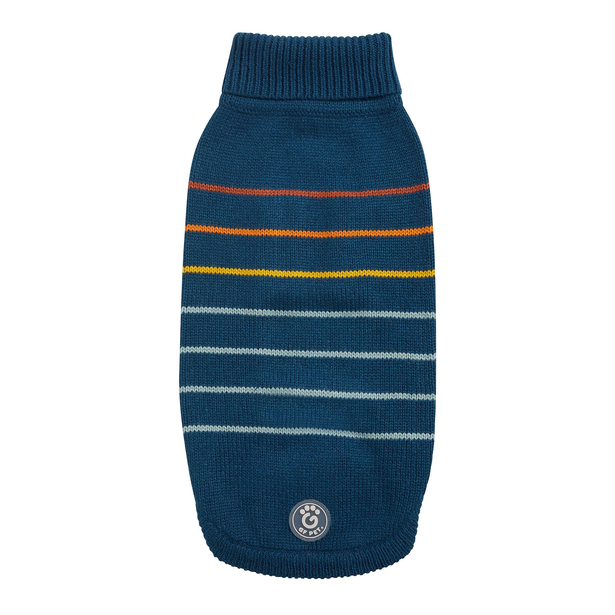 The GF PET Trekking Sweater makes a calm and confident attitude statement. With its always-loved stripe design and warm heathered color combos, it is no wonder that this beauty is back by popular demand! A quality multi-knit turtleneck that boasts a comfortable, sculpted unisex fit, secure ribbed arm holes and an authentic GF PET Logo Patch. For balanced dogs who know their own mind. Keep on Trekking!