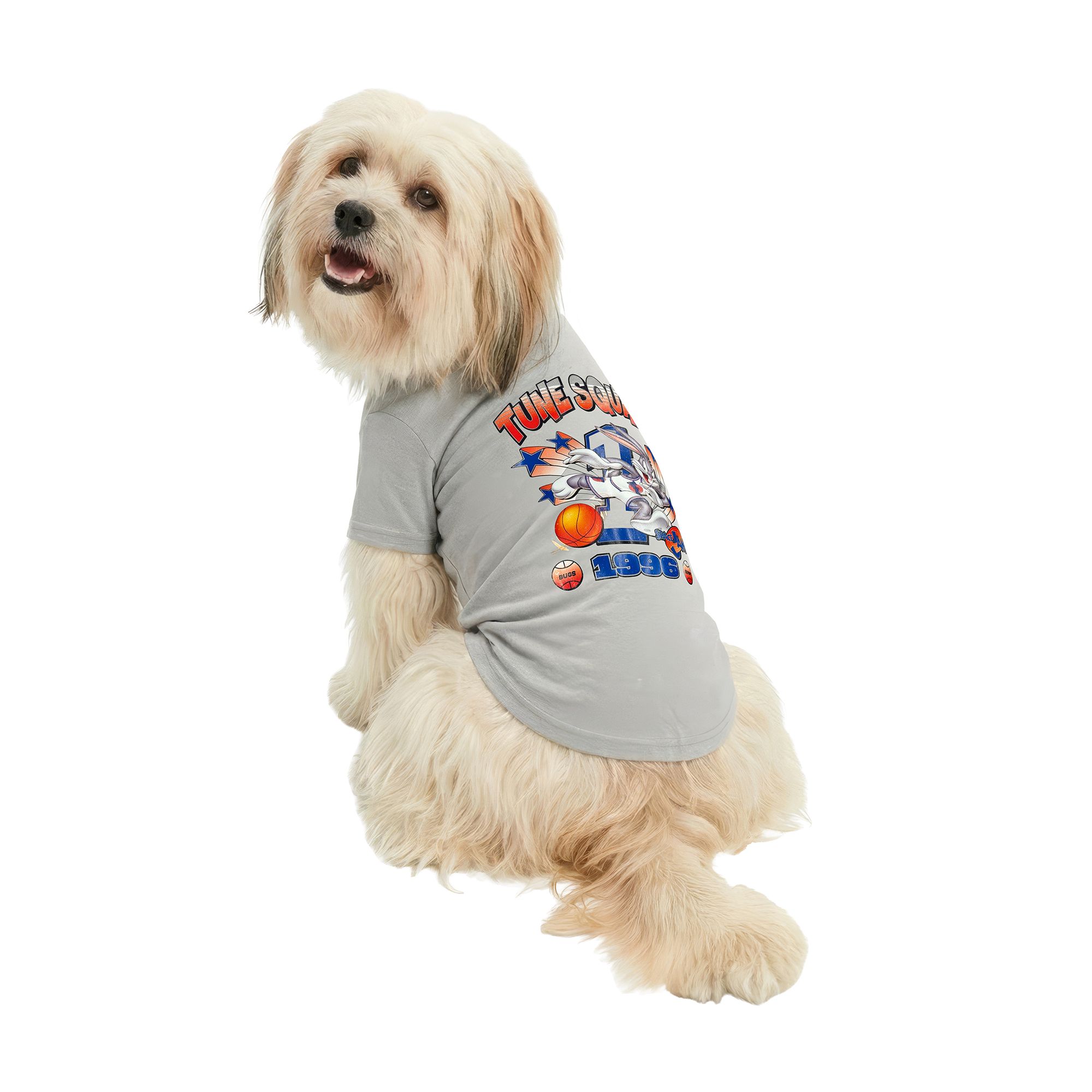 Description and Overview: Turn back the clock and let your pup suit up like a true all–star. This Space Jam pet jersey brings full Tune Squad energy with classic courtside style, breathable mesh, and bold graphics that channel the ultimate cartoon showdown. Lightweight and game–ready, it's perfect for playtime, photo ops, and reliving those iconic '90s moments. Because every legend needs a jersey–and every dog deserves to be part of the squad.