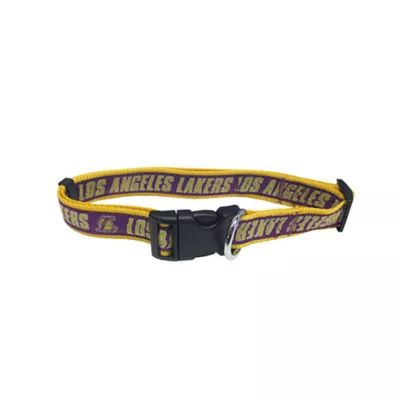 Officially licensed by the NBA, this Pets First Los Angeles Lakers Dog Collar is made of a durable heavy-duty nylon fabric making it the ideal & safest collar for dogs. This is the #1 Dog Collar for all basketball fans, with the team name, logo and logotype ribbon sewn in vibrant team colors onto a contrasting nylon web.