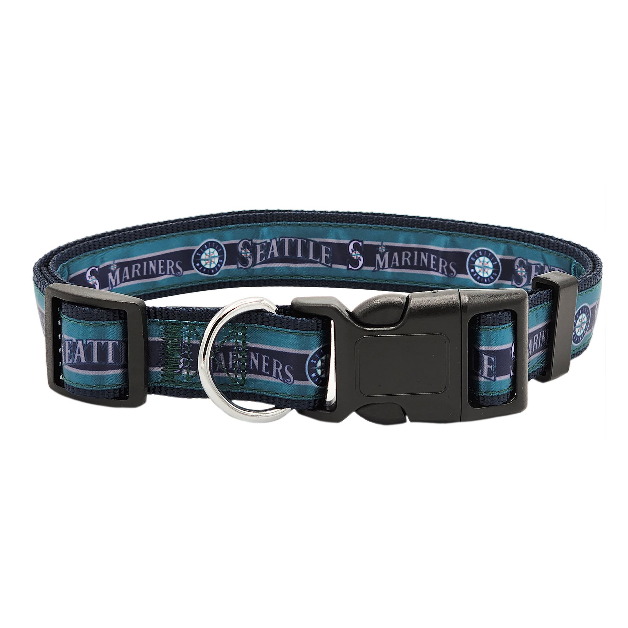 Show support for your favorite team while you get ready for game day, and let your pets show off their team spirit with the Pets First Houston Astros Pet Collar. This stylish MLB dog collar features your favorite team's name and logo sewn on to the collar. The nylon web collar is adjustable and proudly displays your team's colors. Meanwhile, it has a snap-lock plastic buckle that makes it easy to put on and take off as well as a silver D-ring to attach a lead. This is the PERFECT COOL COLLAR for your pet, or for gifting to your loved ones!