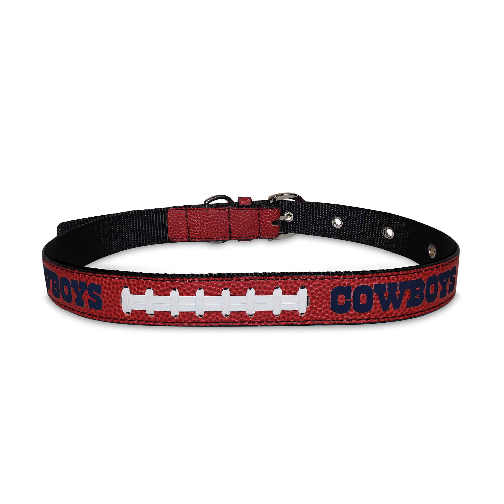 This Pets First New York Giants Signature Pro Collar is a high-class premium collar for pets. Designed for higher end consumers, it is constructed from solid and durable materials designed with the newest technology. Officially licensed by the NFL, it has 6 adjustment holes for a perfect fit, and a metal buckle for maximum strength & safety, as well as a metal D ring to attach your leash!