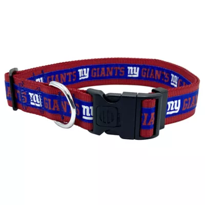 Show support for your favorite team while you get ready for game day, and let your pets show off their team spirit with the Pets First New York Giants Pet Collar. This stylish NFL dog collar features your favorite team's name and logo sewn on to the collar. The nylon web collar is adjustable and proudly displays your team's colors. Meanwhile, it has a snap-lock plastic buckle that makes it easy to put on and take off as well as a silver D-ring to attach a lead. This is the PERFECT COOL COLLAR for your pet, or for gifting to your loved ones!