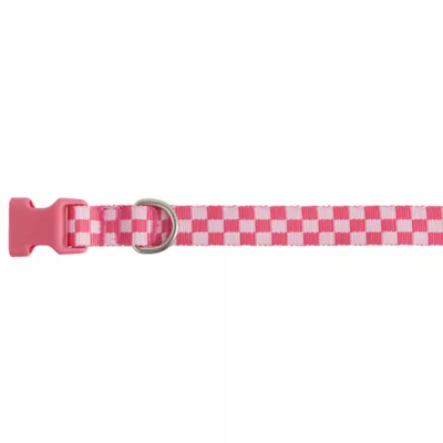This Top Paw Pink Checkered Dog Collar is a strong, sturdy, and stylish choice in collars for your furry friend. This great-looking collar is fully adjustable for a comfortable yet secure fit, is built to last from durable nylon, and is a collar that both you and your dog will be pleased with. Only at PetSmart.