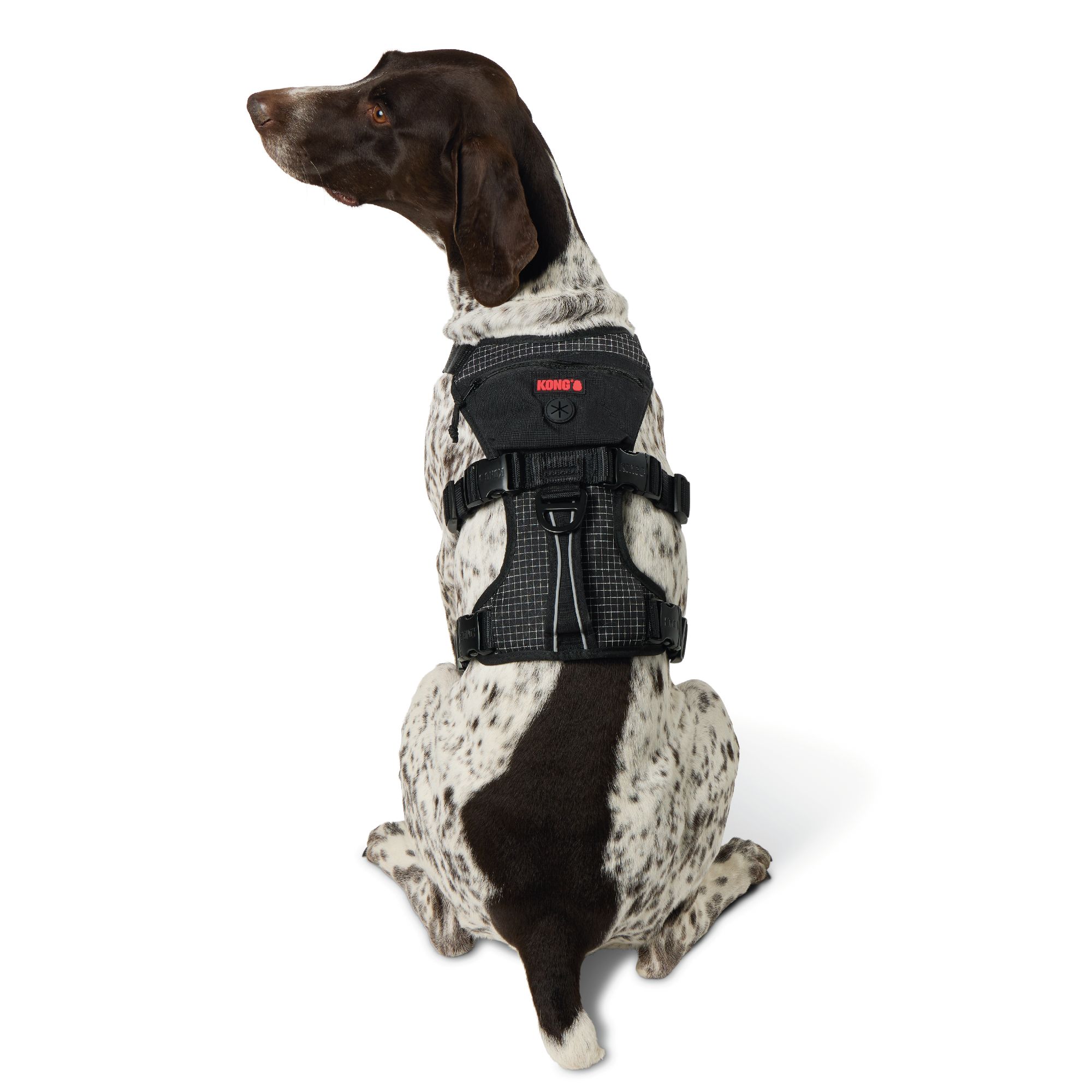 The Kong Waste Bag Dog Harness is great for active dogs. Ultra-durable and fully adjustable for a comfortable yet secure fit, it features a collapsible handle for added control, and even comes with a waste bag dispenser and bags for easy clean-up on walks.