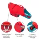 Description: Designed to comfortably fit active dogs in the water, The Surf n' Turf Life Vest is loaded with features. The outer water–resistant shell is made with a tough ripstop material in high contrast colors and reflective trim for extra visibility. Two transverse handles are sewn in to the top should you need to quickly extract your dog from the water. We've also added a rear leash attachment for when he finally comes to shore.